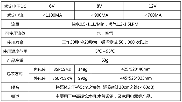 用于電動拖把、飲水機、凈水器、泡奶機、泡茶機、皂液器等母嬰、衛浴、生活家電類產品