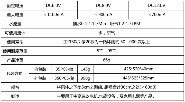 用于電動拖把、飲水機、凈水器、泡奶機、泡茶機、皂液器等母嬰、衛浴、生活家電類產品
